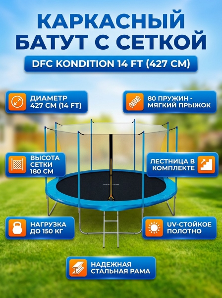 Батут каркасный с сеткой DFC Kondition 14 ft с лестницей - Обзор ТОП-10 лучших батутов 2025 🏆: Обзор и рейтинг