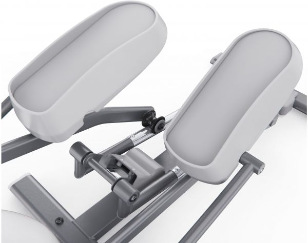 Нескользящие педали обеспечивают отличное сцепление даже при интенсивных занятиях. Они просторные, устойчивые и предотвращают проскальзывание стоп, обеспечивая дополнительную безопасность. Длина шага составляет 50,8 см, что позволяет комфортно тренироваться как высоким, так и невысоким пользователям, делая движение естественным и эффективным. Все данные отображаются на LCD-дисплее, где вы можете отслеживать ключевые параметры: время, дистанция, калории, пульс, мощность, скорость и темп. Для удобного отслеживания за состоянием организма во время тренировки на поручнях установлены сенсорные датчики пульса. Так же в дисплей встроено 12 программ + ручной, целевой, пользовательский режим, восстановления пульса и оценка ИМТ. Для устойчивости тренажёр оснащён компенсаторами неровности пола, благодаря которым он надёжно стоит даже на неидеальной поверхности. Встроенные транспортировочные ролики позволяют легко переместить тренажёр с места на место, что особенно удобно при использовании в ограниченном пространстве. Эллиптический тренажёр DFC Westinghouse E-WE13Y-WH — это оптимальное сочетание надёжности, комфорта и функциональности. Тренажёр продуман до мелочей: есть держатель для бутылки, чтобы вода всегда была под рукой, и держатель для планшета или телефона, позволяющий смотреть видео или слушать музыку во время тренировки.