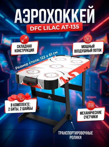 Аэрохоккей DFC LILAC AT-135 - очень компактная и яркая модель. Эффектный дизайн с выразительными акцентами привлекает внимание с первого взгляда, LILAC станет отличным поводом собраться с друзьями или семьёй.