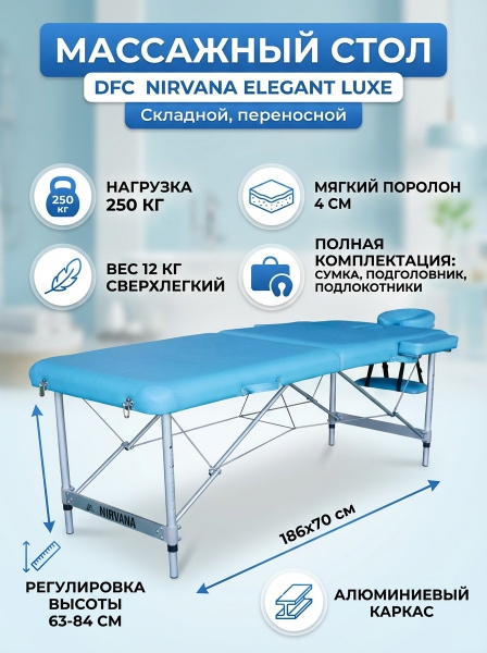 Массажный стол DFC Nirvana Elegant Luxe голубой - Описание