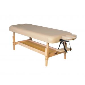 Массажный стационарный стол DFC Superior TS100 - ОписаниеПредлагаемый массажный стол идеально подойдет для эксплуатации дома. При его изготовлении использовались качественные материалы и к основным характеристикам нет нареканий. Для производства обивки применялась высококачественная искусственная кожа, она имеет привлекательный внешний вид и приятную структуру. Полотно не повреждается и не истирается в процессе эксплуатации.