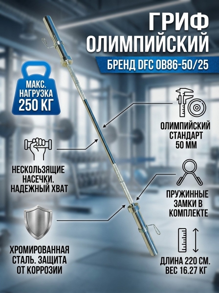 Гриф олимпийский прямой DFC OB86-50/25 - Описание