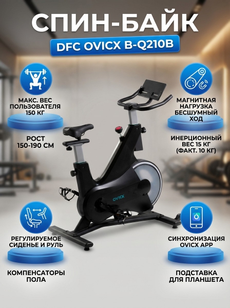Спин-байк DFC OVICX B-Q210B - ОписаниеСомневаетесь? - Посмотрите рейтинг ТОП-10 по категории «Велотренажеры»Спин-байк DFC OVICX Q210 черного цвета — отличный вариант для тех, кто желает проводить качественные кардио-тренировки прямо у себя дома, имитируя катание на настоящем велосипеде. Тренировки на спин-байке помогают укрепить ноги, ягодицы и живот, улучшить кардиореспираторную систему и сбросить вес.