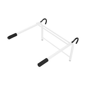 Данная стойка имеет длинные широкие брусья, обеспечивающие комфортный хват в любых положениях. Также их конструкция дает возможность удобно отжиматься с упором ногами в пол и выполнять горизонтальные подтягивания. Турник, регулируемый по высоте, позволяет выбирать любую ширину хвата без ограничений.