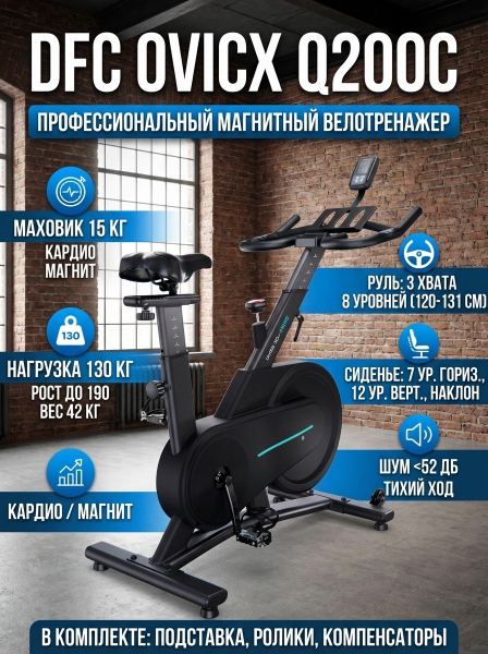 Спин-байк DFC Q200C OVICX - ОписаниеСомневаетесь? - Посмотрите рейтинг ТОП-10 по категории «Велотренажеры»Спин-байк DFC OVICX Q200C — отличный вариант для тех, кто желает проводить качественные кардио-тренировки прямо у себя дома, имитируя катание на настоящем велосипеде. Уникальный объединенный руль с тремя видами хвата (Bullhorn, Butterfly и Aero) и покрытием, устойчивым к скольжению и поту, гарантирует удобство и безопасность в процессе тренировки.