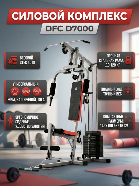 Компания основана в Китае – родине многих организаций, работающих в сфере высоких технологий по производству спортивного оборудования. С 2006 года компания вышла на мировой рынок и получила международный сертификат ISO, подтверждающий безопасность в сфере производства. В ассортименте фирмы вы найдете тренажеры, спортивные аксессуары, массажеры и лимфодренажные аппараты, аспираторы, приборы массажного давления и многое другое. Цель компании – сделать мир лучше и красивее с помощью собственной продукции! Страна бренда: Россия Премиальность бренда:Посмотреть все многофункциональные тренажеры-мультистанции DFC (19) Силовой комплекс с верхней тягой DFC D7000 - Характеристики