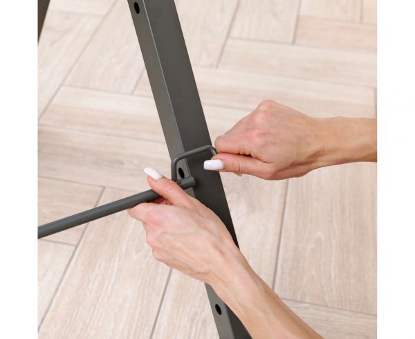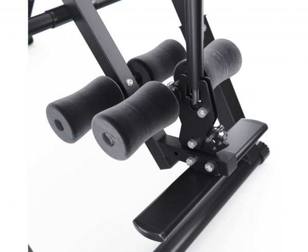 Максимальная нагрузка составляет 135 кг, что позволяет использовать стол людям разной комплекции. Благодаря ограничителю угла наклона в виде перекладины, вы сможете выбрать одно из трёх положений (20, 40 или 60 градусов) или установить стол на 180 градусов, убрав перекладину. Также стол оснащён страховочным ремнём, который обеспечивает безопасность во время выполнения упражнений.