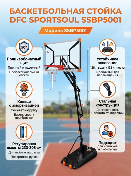 Баскетбольная мобильная стойка DFC SPORTSOUL SSBP5001 - Обзор ТОП-10 лучших баскетбольных стоек 2025 🏆: Обзор и рейтинг