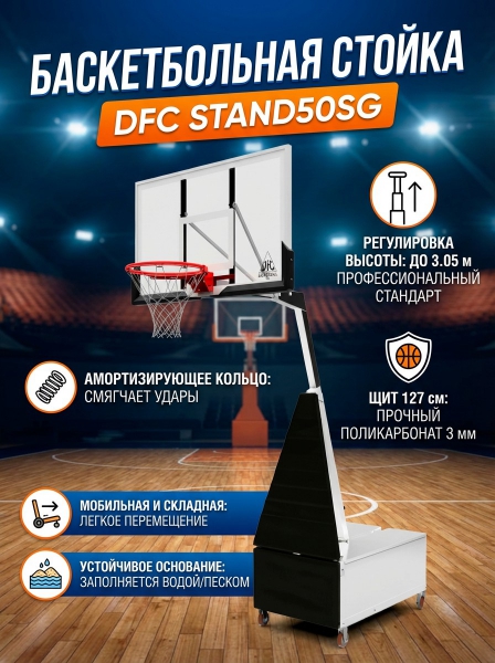 Баскетбольная мобильная стойка DFC Stand50SG - ДоставкаДоставка по Москве: бесплатно, 1-2 дняДоставка по Санкт-Петербургу: бесплатно, 2-3 дня Доставка по России: стоимость уточняйте у оператора. Баскетбольная мобильная стойка DFC Stand50SG - Отзывы5.0