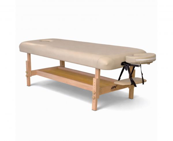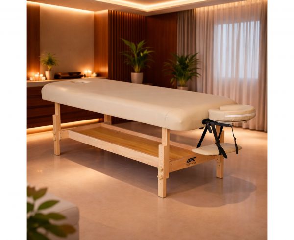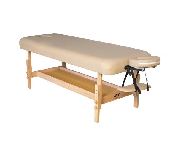 Стационарный массажный стол отличается высокой устойчивостью и надежностью. Прочные и толстые деревянные ножки из бука обеспечивают отличную фиксацию на полу и уверенную работу без раскачивания. Такая конструкция особенно ценится при регулярном использовании в домашних условиях.