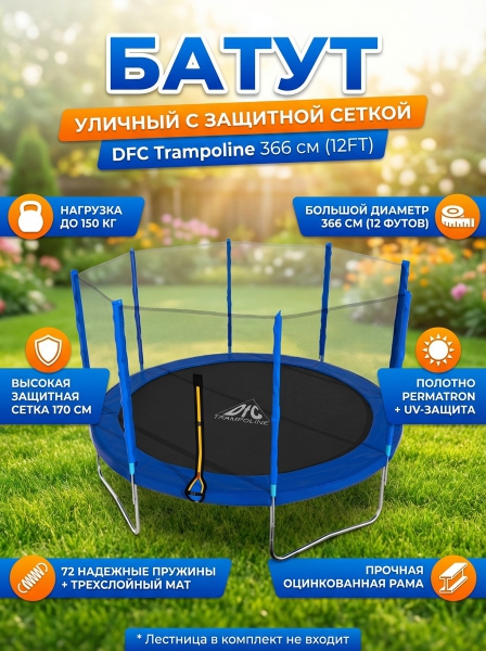 Батут с внешней сеткой DFC Trampoline Fitness 12FT-TR-B - Обзор ТОП-10 лучших батутов 2025 🏆: Обзор и рейтинг
