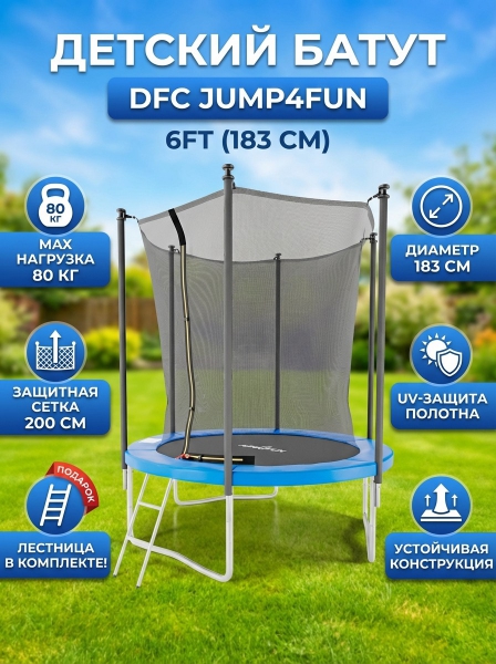 Батут с внутренней защитной сеткой DFC Trampoline STOCK 6 ft JUMP4FUN синий