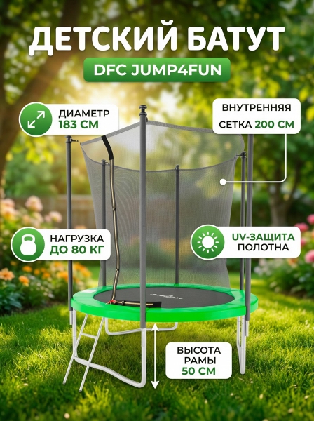 Батут с внутренней защитной сеткой DFC Trampoline STOCK 6 ft JUMP4FUN зеленый - Обзор ТОП-10 лучших батутов 2025 🏆: Обзор и рейтинг