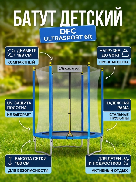 Батут с защитной сеткой DFC ULTRASPORT 6 ft - БрендDFC – бренд, поставляющий на рынок специализированные приборы и оборудование для красоты и здоровья.