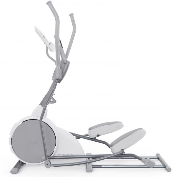 Кросстрейнер DFC Westinghouse E-WE13-WH - ОписаниеЭлектромагнитный эллиптический тренажёр DFC Westinghouse WH — это мощный и удобный кардио тренажёр, созданный специально для домашнего использования. Он обеспечивает полноценную аэробную нагрузку на все группы мышц без ударной нагрузки на суставы, помогает сжигать калории, развивать выносливость и улучшать сердечно-сосудистую систему. Модель способна выдержать пользователя весом до 120 кг. Тренажёр оснащён электромагнитной системой нагрузки, которая обеспечивает максимально точную и бесшумную регулировку сопротивления. Электронная регулировка сопротивления с 32 уровнями позволяет точно настраивать интенсивность тренировки, а увеличенный инерционный вес маховика 15 кг способствует плавной и стабильной работе тренажёра, создавая комфортные условия для длительных и эффективных тренировок. Нескользящие педали обеспечивают отличное сцепление даже при интенсивных занятиях. Они просторные, устойчивые и предотвращают проскальзывание стоп, обеспечивая дополнительную безопасность. Длина шага составляет 51 см, что позволяет комфортно тренироваться как высоким, так и невысоким пользователям, делая движение естественным и эффективным. Все данные отображаются на LCD-дисплее, где вы можете отслеживать ключевые параметры: время, дистанция, пульс, калории, скорость, вращения педалей в минуту (RPM), режим сканирования. Тренажер оснащён 12 встроенными программами, а также ручным, целевым и пользовательским режимами. Для удобного контроля за состоянием организма во время тренировки на поручнях установлены сенсорные датчики пульса. Для устойчивости тренажёр оснащён компенсаторами неровности пола, благодаря которым он надёжно стоит даже на неидеальной поверхности. Встроенные транспортировочные ролики позволяют легко переместить тренажёр с места на место, что особенно удобно при использовании в ограниченном пространстве. Электромагнитный эллиптический тренажёр DFC Westinghouse WH — это оптимальное сочетание надёжности, комфорта и функциональности. Тренажёр продуман до мелочей: есть держатель для бутылки, чтобы вода всегда была под рукой, и держатель для планшета или телефона, позволяющий смотреть видео или слушать музыку во время тренировки.