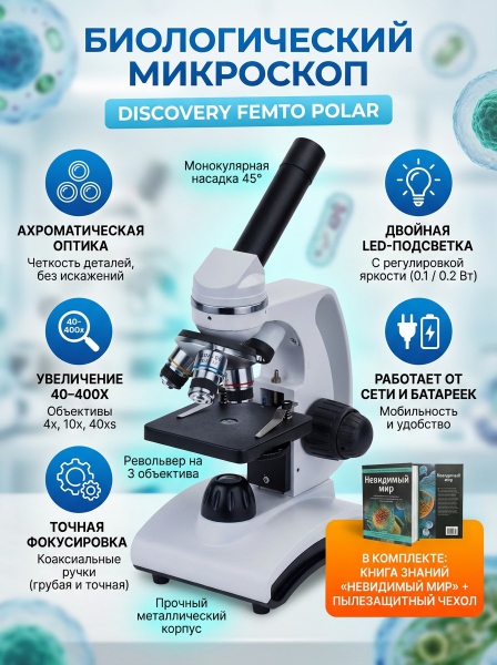 Микроскоп Discovery Femto Polar с книгой - ДоставкаДоставка по Москве: бесплатно, 1-2 дняДоставка по Санкт-Петербургу: бесплатно, 2-3 дня Доставка по России: стоимость уточняйте у оператора. Микроскоп Discovery Femto Polar с книгой - Отзывы0.0