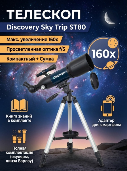 Телескоп Discovery Sky Trip ST80 с книгой