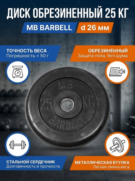Диск обрезиненный MB Barbell MB-PltB26-25 - БрендMB Barbell – это торговая марка, представляющая специализированное и высококачественное оборудование для оснащения спортивных залов.