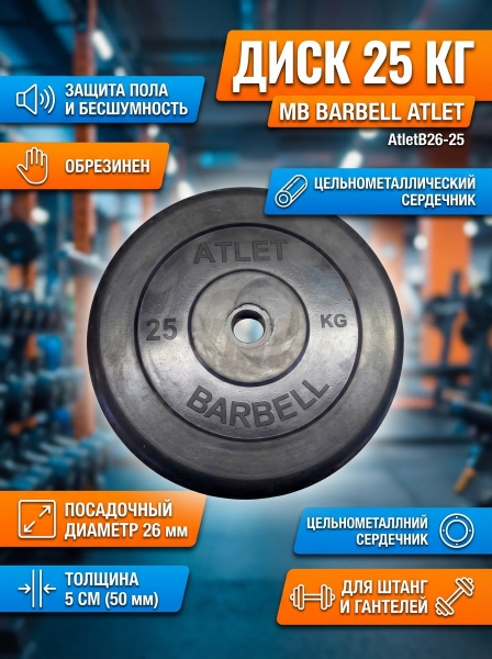 Диск обрезиненный MB Barbell MB-AtletB26-25 - БрендMB Barbell – это торговая марка, представляющая специализированное и высококачественное оборудование для оснащения спортивных залов.