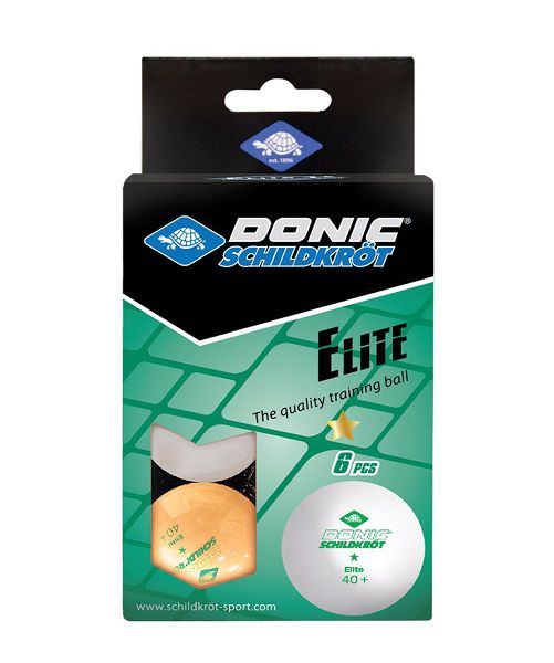 Мячики для н/тенниса Donic Elite 1* 40+ 6 штук, белый + оранжевый - Преимущества