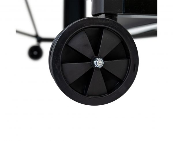 Для удобного хранения ракеток и мячей предусмотрен специальный держатель, который входит в комплект поставки. Стол оснащен четырьмя прорезиненными двойными роликами с плавным ходом диаметром 128 мм, которые обеспечивают легкое перемещение стола.