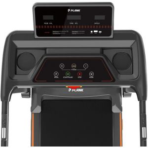 Эта надежная беговая дорожка включает в себя консоль, где вы можете выбрать любую из 12 предустановленных программ, а также отображает время, скорость, расстояние, затраченные калории и пульс. Пульс измеряется при помощи прикосновения к контактным датчикам на рукоятках.