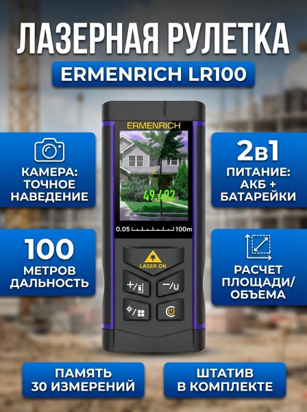 Лазерная рулетка с камерой Ermenrich LR100 - БрендСтрана бренда: Германия Премиальность бренда:Лазерная рулетка с камерой Ermenrich LR100 - Характеристики