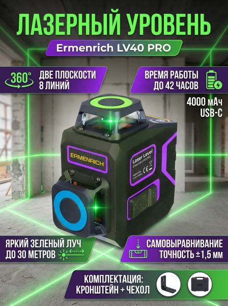 Лазерный уровень Ermenrich LV40 PRO фиолетовый - БрендСтрана бренда: Германия Премиальность бренда:Лазерный уровень Ermenrich LV40 PRO фиолетовый - Характеристики