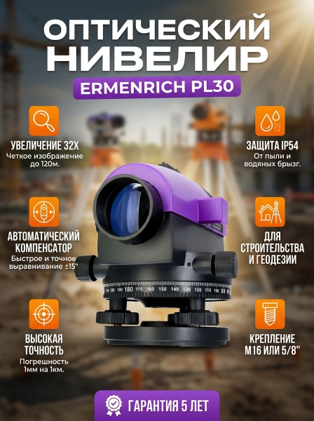 Нивелир Ermenrich PL30, фиолетовый - Преимущества