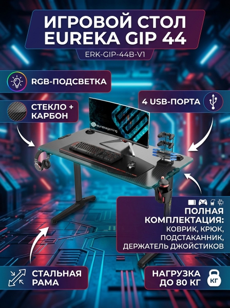 Компьютерный стол для геймеров Eureka GIP 44 с RGB-подсветкой - Описание