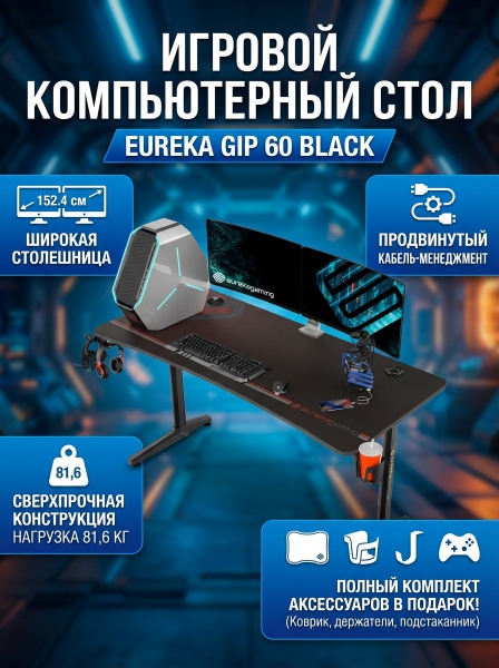 Компьютерный стол для геймеров Eureka GIP 60 Black - ДоставкаДоставка по Москве: бесплатно, 1-2 дняДоставка по Санкт-Петербургу: бесплатно, 2-3 дня Доставка по России: стоимость уточняйте у оператора. Компьютерный стол для геймеров Eureka GIP 60 Black - Отзывы5.0