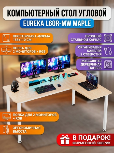 Стол для компьютера угловой Eureka L60R-MW Maple - ДоставкаДоставка по Москве: бесплатно, 1-2 дняДоставка по Санкт-Петербургу: бесплатно, 2-3 дня Доставка по России: стоимость уточняйте у оператора. Стол для компьютера угловой Eureka L60R-MW Maple - Отзывы0.0