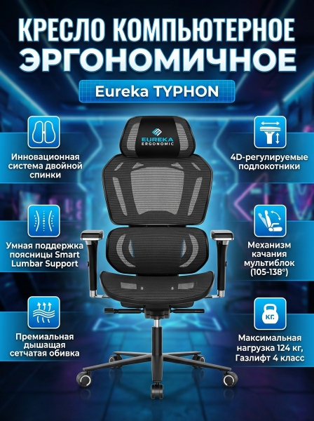 Кресло компьютерное эргономичное (для геймеров) Eureka TYPHON, Blue - Обзор ТОП-10 лучших ортопедических кресел 2025 🏆: Обзор и рейтинг