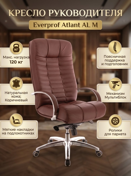 Кресло руководителя Everprof Atlant AL M кожа - ОписаниеСомневаетесь? - Посмотрите рейтинг ТОП-10 по категории «Ортопедические кресла»Кресло руководителя Atlant AL M (Кожа) из натуральной кожи с подголовником и поясничной поддержкой.