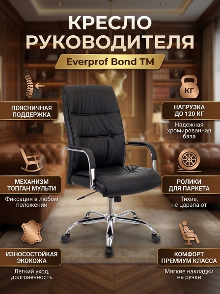 Кресло руководителя Everprof Bond TM - ОписаниеСомневаетесь? - Посмотрите рейтинг ТОП-10 по категории «Ортопедические кресла»Кресло руководителя Bond TM экокожа с поясничной поддержкой, хромированной крестовиной.