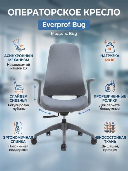 Операторское кресло Everprof Bug ткань - Обзор ТОП-10 лучших ортопедических кресел 2025 🏆: Обзор и рейтинг