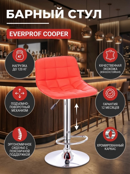 Стул барный Everprof Cooper экокожа - БрендСтрана бренда: КНР Премиальность бренда:Стул барный Everprof Cooper экокожа - Характеристики