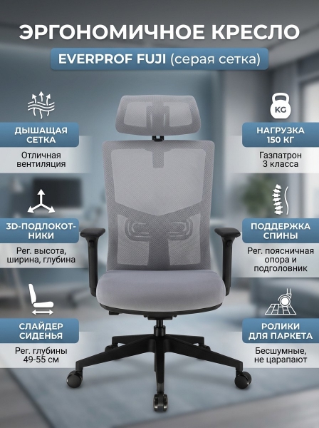 Эргономичное кресло Everprof Fuji серая сетка - ДоставкаДоставка по Москве: бесплатно, 1-2 дняДоставка по Санкт-Петербургу: бесплатно, 2-3 дня Доставка по России: стоимость уточняйте у оператора. Эргономичное кресло Everprof Fuji серая сетка - Отзывы0.0
