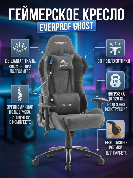 Геймерское кресло Everprof Ghost ткань, серый