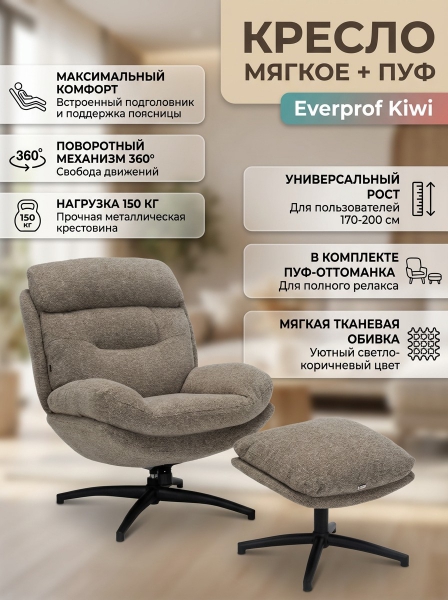 Кресло мягкое Everprof Kiwi ткань, светло-коричневый