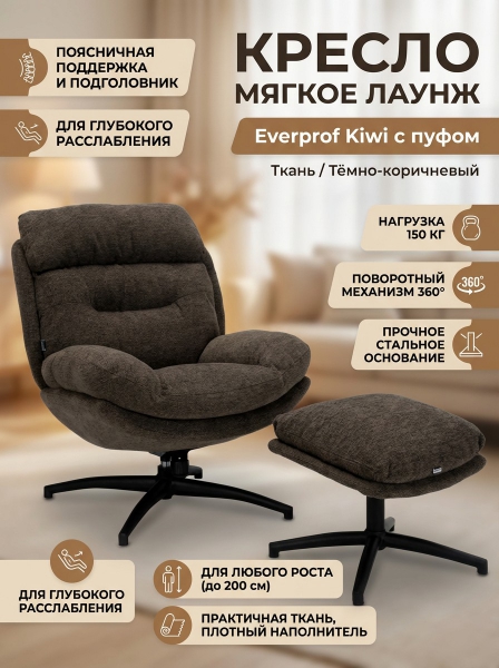 Кресло мягкое Everprof Kiwi ткань, тёмно-коричневый - БрендСтрана бренда: КНР Премиальность бренда:Посмотреть все ортопедические кресла-реклайнеры для отдыха и работы Everprof (8) Кресло мягкое Everprof Kiwi ткань, тёмно-коричневый - Характеристики