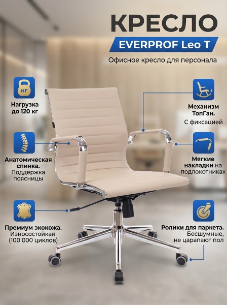 Кресло для персонала Everprof Leo T - ОписаниеСомневаетесь? - Посмотрите рейтинг ТОП-10 по категории «Ортопедические кресла»Кресло для персонала Everprof Leo T экокожа.