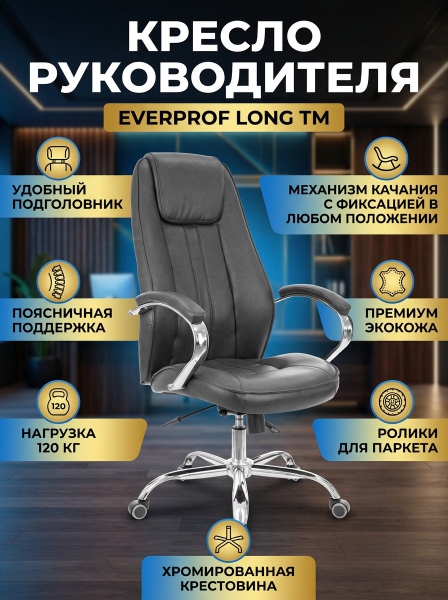 Кресло руководителя Everprof Long TM - ОписаниеСомневаетесь? - Посмотрите рейтинг ТОП-10 по категории «Ортопедические кресла»Офисное кресло Long TM из экокожи с удобным подголовником и поясничной поддержкой.