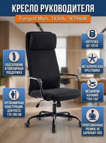 Кресло руководителя Everprof Mars ткань - Обзор ТОП-10 лучших ортопедических кресел 2025 🏆: Обзор и рейтинг