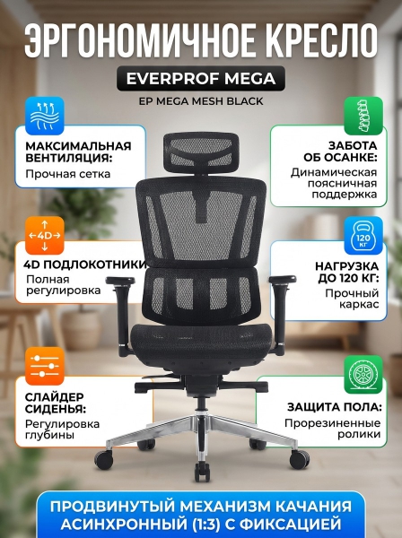 Эргономичное кресло Everprof Mega сетка - ДоставкаДоставка по Москве: бесплатно, 1-2 дняДоставка по Санкт-Петербургу: бесплатно, 2-3 дня Доставка по России: стоимость уточняйте у оператора. Эргономичное кресло Everprof Mega сетка - Отзывы0.0