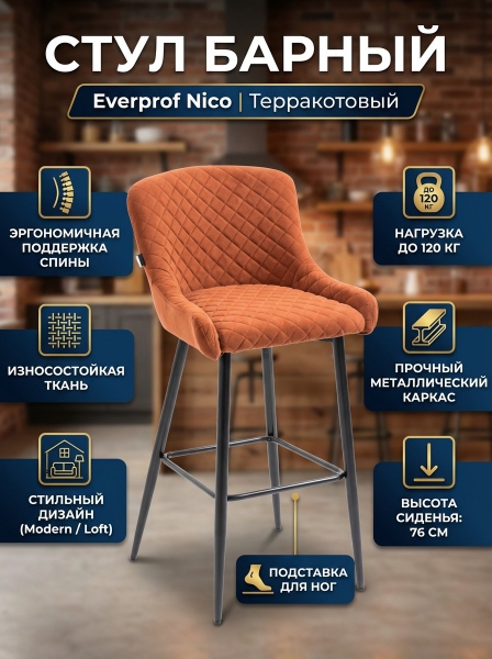 Стул барный Everprof Nico ткань - ДоставкаДоставка по Москве: бесплатно, 1-2 дняДоставка по Санкт-Петербургу: бесплатно, 2-3 дня Доставка по России: стоимость уточняйте у оператора. Стул барный Everprof Nico ткань - Отзывы0.0