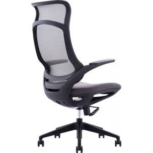 Высокая спинка с регулируемым подголовником (ход 60 мм) обеспечивает оптимальную поддержку головы и шеи, позволяя адаптировать кресло под индивидуальные потребности. Мягкий наполнитель из вспененного полиуретана плотностью 22–25 кг/куб.м сохраняет форму и гарантирует комфорт при длительном использовании.