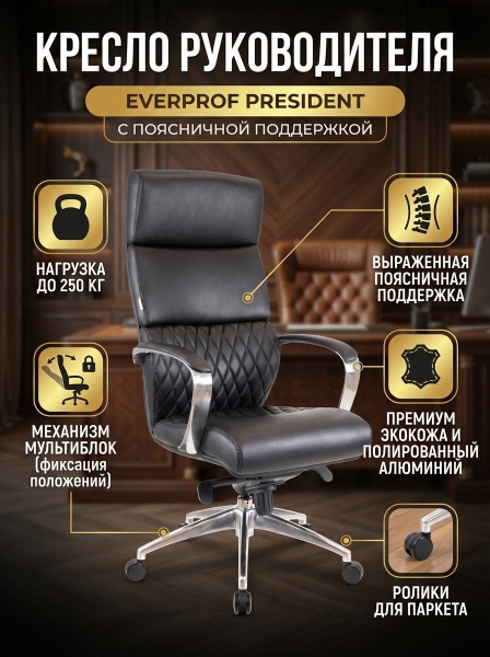 Кресло руководителя Everprof President экокожа - Обзор ТОП-10 лучших ортопедических кресел 2025 🏆: Обзор и рейтинг