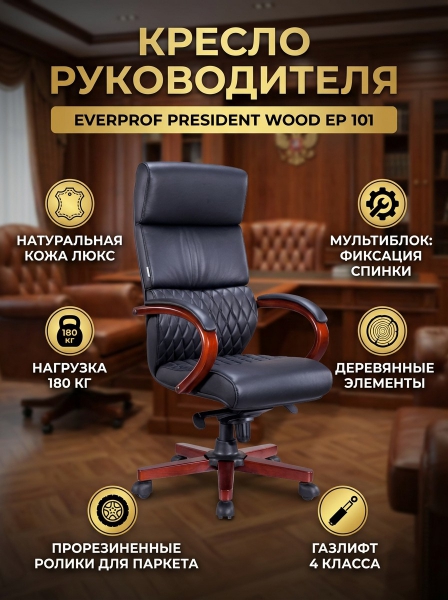 Кресло руководителя Everprof President Wood кожа - Описание