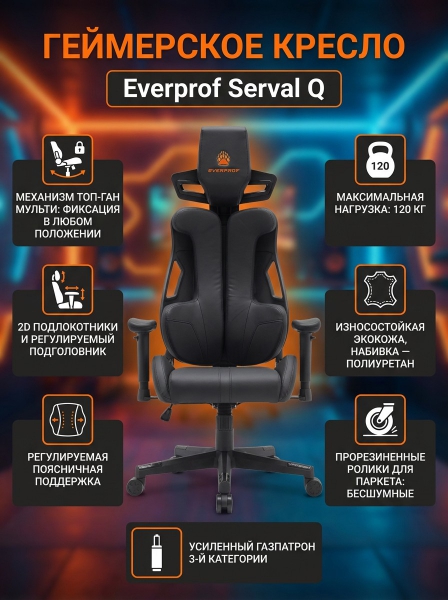 Геймерское кресло Everprof Serval Q экокожа - Обзор ТОП-10 лучших ортопедических кресел 2025 🏆: Обзор и рейтинг